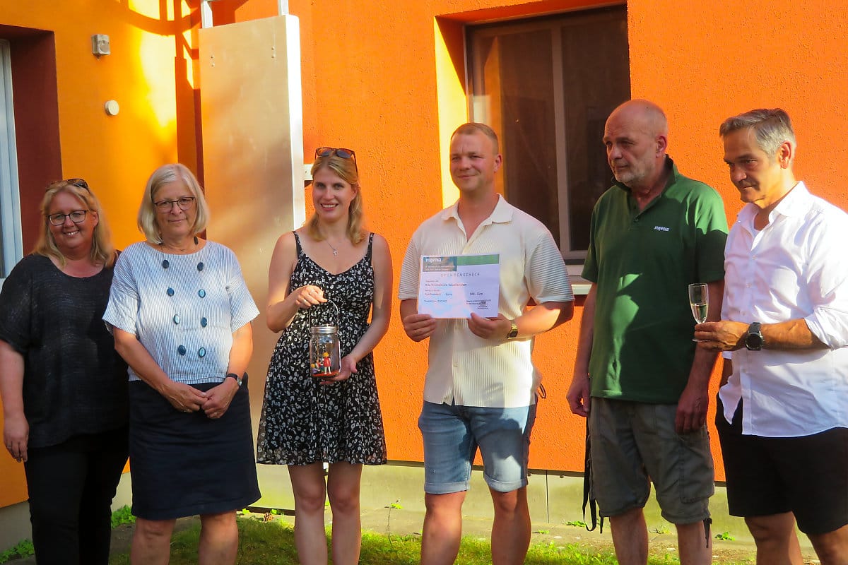 Am 2. Juli war es endlich so weit: Die von der Bürgerenergiegenossenschaft „Wir in Neuenkirchen“ (WiN) finanzierte Photovoltaik-Anlage auf der Kita Krümelkiste ist in Betrieb gegangen. Um 17:30 Uhr fand bei strahlendem Sonnenschein die offizielle Übergabe an die Gemeinde Neuenkirchen und die Kita Krümelkiste statt. Die Anlage produziert nun Strom, der in der Kita verbraucht wird. Überschüsse werden in das Stromnetz eingespeist.